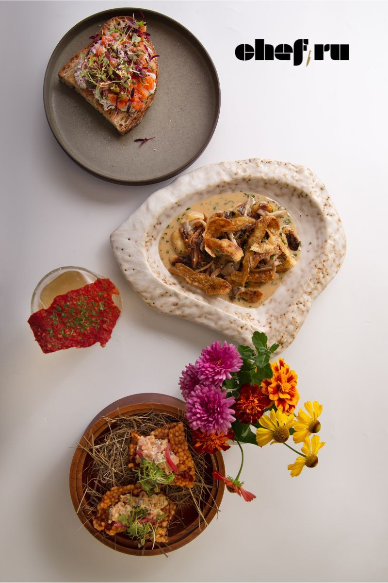| еженедельный дайджест среда шефа 4 сентября 2024 | | | | Самые яркие эко-блюда с комментариями шефов изучайте в нашей подборке | | | | Андрей Колодяжный, шеф-повар ресторана "Черная лисичка" | | "Когда у моей бабушки в погребе долго хранилась капуста, она со временем увядала. И чтобы её не выбрасывать, мы с бабушкой придумали её мариновать и готовить из неё салат. Листья инжира съедобны, очень полезны для организма и в гастрономии известны богатой ароматикой. В данном блюде я использую их в качестве основы для заправки." | | | | Андрей Федосеев, шеф-повар ресторана "БОР", бренд-шеф Bjorn | | "Мы используем несколько видов крымского абрикоса, придаем им разные текстуры — плотный абрикос маринуем, мягкий и сочный в свежем виде, а также вялим абрикос. Абрикосовую косточку, конечно, не выбрасываем, а варим в абрикосовом сиропе, а после обжариваем. После маринования абрикоса остается сладковатый, насыщенный вкусом маринад, из которого готовим желе и также используем в десерте." | | | | Максим Любимов, шеф-повар ресторана LEO wine&kitchen | | "В закуске из зеленых томатов, кольраби и крыжовника мы используем вяленые зеленые томаты и кольраби, кожуру и центр томатов ферментируем и сушим, а кожуру кольраби маринуем и используем в следующем блюде: брюшко осетра, мидии и шисо .В основе блюда брюшки осетра, а спинку мы используем в другом блюде. Каждый овощ и травы в десерте, который называется «Зеленый салат» с мороженым из щавеля и сельдерея используется от и до: латук и его корешок, листья и стебли шавеля, весь сельдерей." | | | | | | Специальная программа для кондитеров и пекарей на «ПИР Экпо» 2024